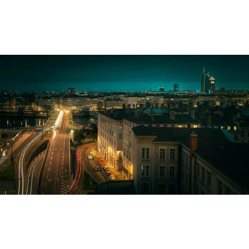 Постер на экокоже 60x110 LinxOne "Огни вечер Лион Франция" интерьер для дома / декор на стену / дизайн