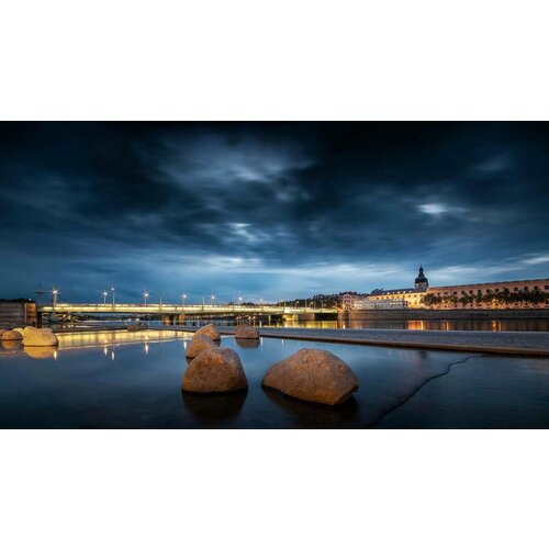Картина на холсте 50x70 LinxOne "Огни вечер Франция Лион" интерьер для дома / декор на стену / дизайн