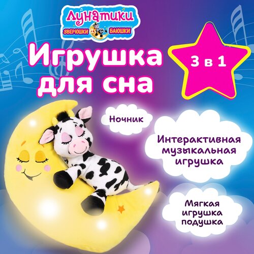 Музыкальная интерактивная игрушка для сна Зверюшки-баюшки лунатики /Корова / мягкая, цветной свет, для девочки, мальчика, для малышей, ночник детский