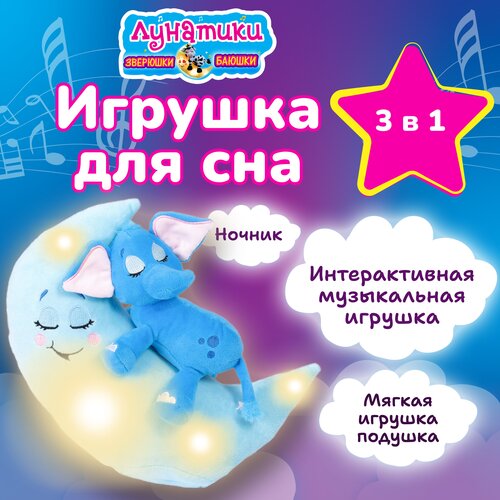 Музыкальная интерактивная игрушка для сна Зверюшки-баюшки лунатики / Слон / мягкая, цветной свет, для девочки, мальчика, для малышей, ночник детский