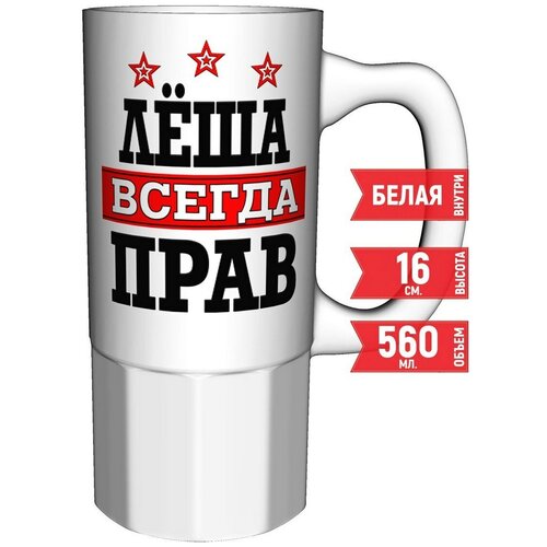 Кружка Лёша всегда прав - 550 мл. 16см. керамика.