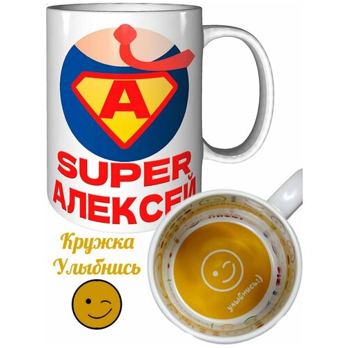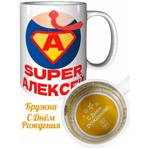 Кружка супер Алексей - на день рождения с пожеланиями.