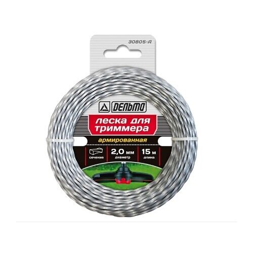 Леска для триммеров армированная, 2 мм, 15 м, витой квадрат