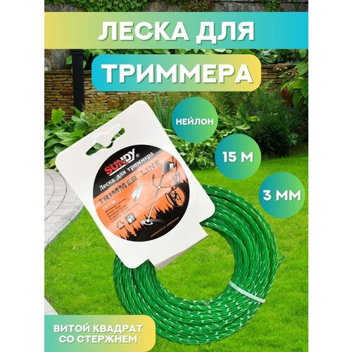 Универсальная леска для триммера 3 мм 15 м витой квадрат со стержнем