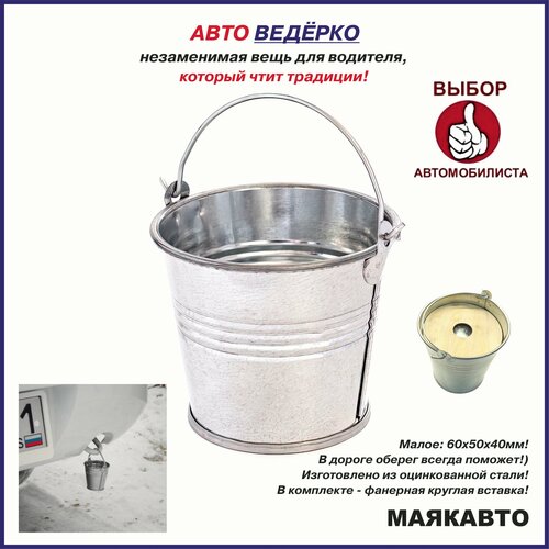 Ведерко / ведро, декоративное / оберег / талисман, с ручкой, оцинкованное, на фаркоп автомобиля малое, МаякАвто