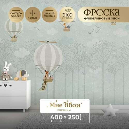 Фреска флизелиновая - детские фотообои Воздушные шарики с зверушками 400х250 (ШхВ)