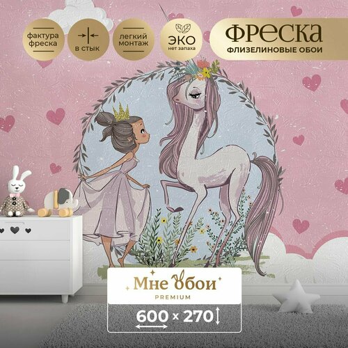 Фреска флизелиновая - детские фотообои Девочка с единорожкой 600х270 (ШхВ)