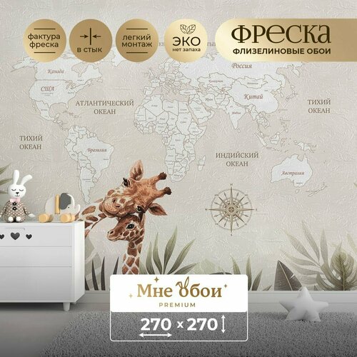 Фреска флизелиновая - детские фотообои Карта с жирафиками 270х270 (ШхВ)