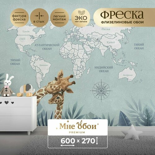 Фреска флизелиновая - детские фотообои Карта с жирафиками 3 600х270 (ШхВ)