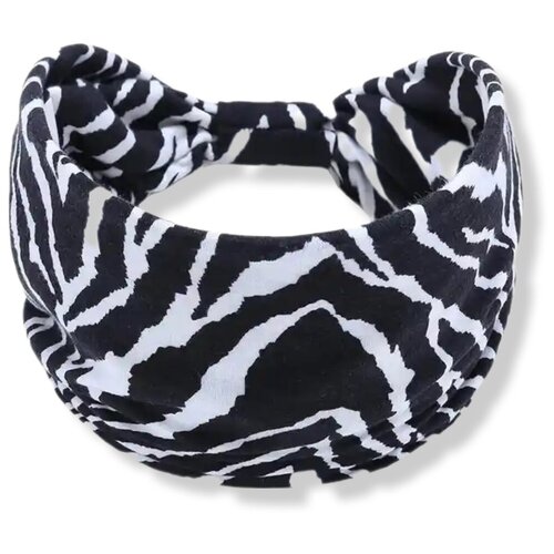повязка на голову хлопковый трикотаж, принт чёрно-белая зебра