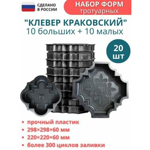 МайДом Форма для тротуарной плитки брусчатки Клевер краковский большой 20 штук, 298х298х60 мм; малый 220х220х60 мм
