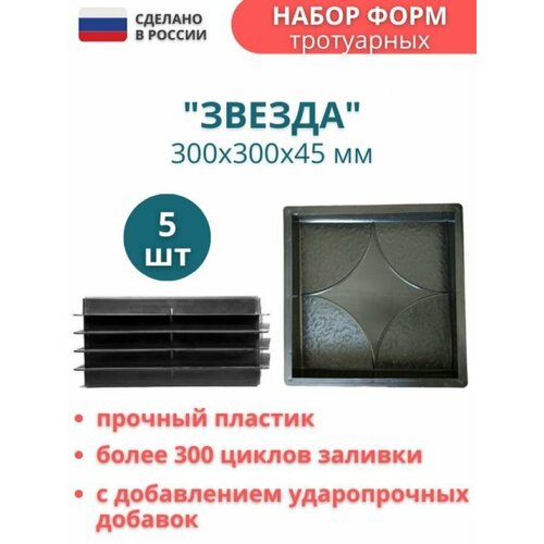 МайДом Форма для тротуарной плитки для бетона садовых дорожек Звезда. Размеры: 300х300х45 мм, комплект - 5 шт. Уютный дом.