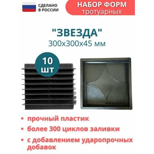 МайДом Форма для тротуарной плитки для бетона садовых дорожек Звезда. Размеры: 300х300х45 мм, комплект - 10 шт. Уютный дом.