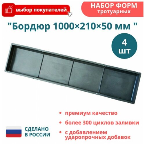 МайДом Формы для бордюра тротуарного 4 шт; Размеры 1000х210х50 мм