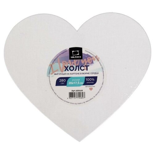 Холст на картоне Малевичъ в форме сердца, хлопок, 20х17,5 см 220120