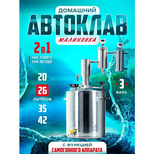 Автоклав-стерилизатор «Малиновка», 26 л (d=31,7см), 2 поколения 2 в 1