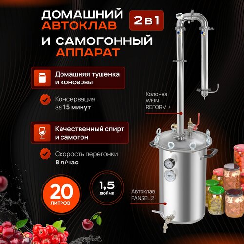 Домашний паровой автоклав - самогонный аппарат 2в1 Fansel 2 / дистиллятор Фансел с бражной колонной 1,5 дюйма Wein Reform+