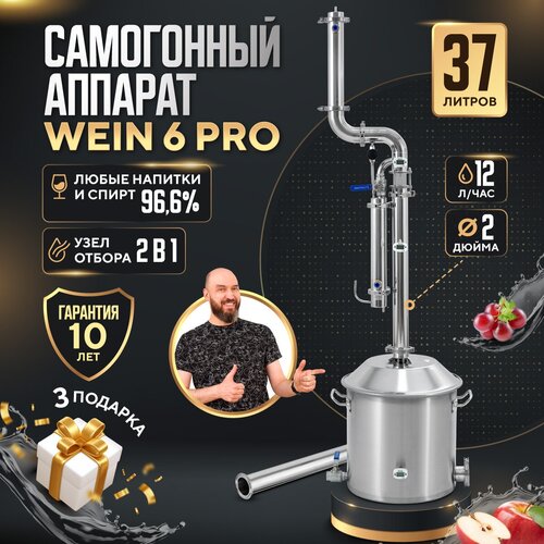 Самогонный аппарат Wein 6 PRO 37л колонного типа 2 дюйма с узлом отбора по пару и жидкости / Дистиллятор Вейн 6 про домашний / колонна
