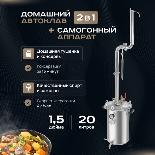 Домашний паровой автоклав - дистиллятор 2в1 Fansel 2 / дистиллятор Фансел с бражной колонной 1,5 дюйма Родник Про 3 для дома