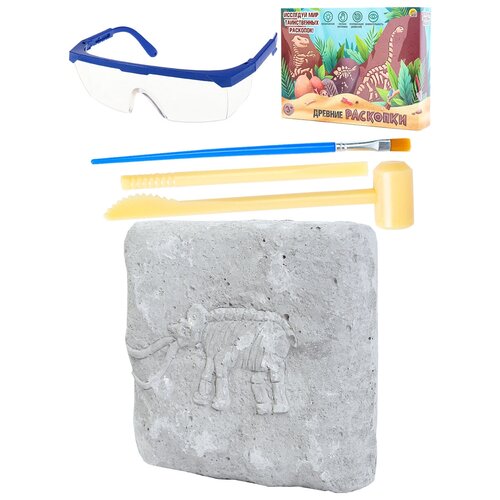 Рыжий кот Набор археолога "Мамонт"камень,4 инструмента,книжка,очки,маска И-5864 .