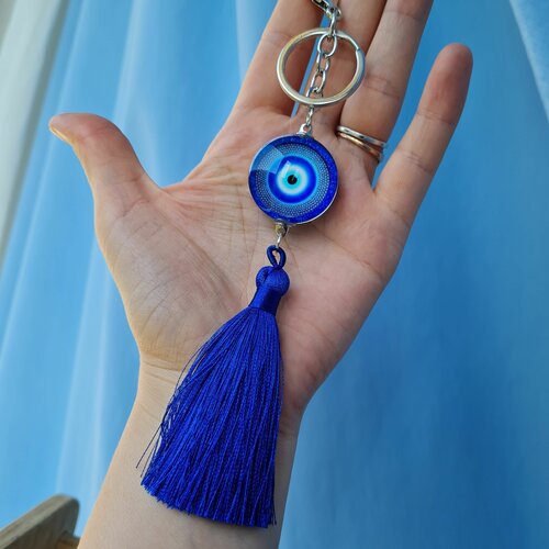 Брелок для ключей и сумки женский оберег талисман турецкий глаз фатимы с кисточкой, подарок защита от сглаза