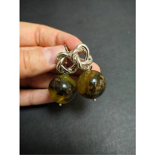 Серьги янтарные круглые фурнитура под винтаж серебро