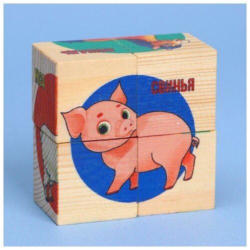 Кубики из натурального дерева "Кто живёт на ферме?"
