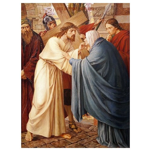 Икона на дереве ручной работы - Крестный путь – Иисус встречает свою мать по дороге на Голгофу, 15x20x1,8 см, арт Ид4784