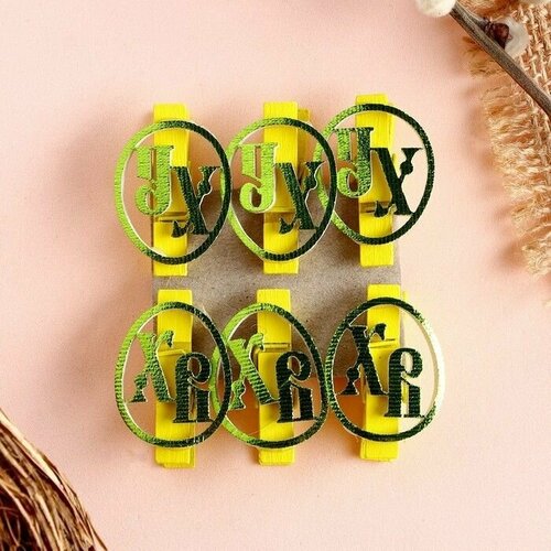 Прищепки «ХВ» жёлтые, набор 6 шт.