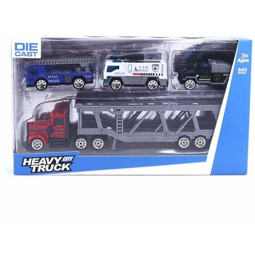 Игрушка Машина Металлическая модель масштаб 1:43 Автовоз Полиция +3 машины 23см (картонная упаковка) (32752)