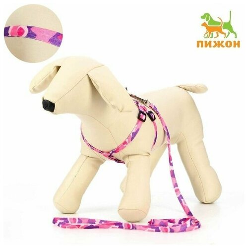 Комплект Камуфляж, ширина 1 см,шлейка 21-35 см,поводок 120 см,капрон, розовый, 1 набор