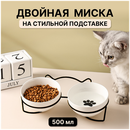 Миска для животных (лапка), двойная на подставке (зол. металл)
