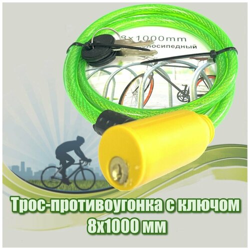 Трос-противоугонка с ключом 8х1000 мм 1245 зелено-желтый