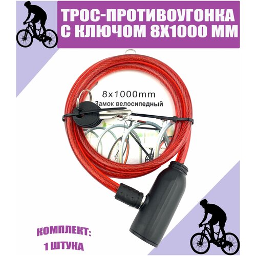 Трос-противоугонка с ключом 8х1000 мм 1245 бордовый