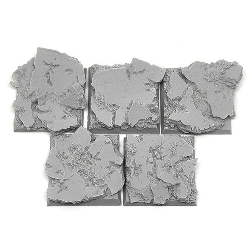 Набор квадратных подставок для миниатюр (Вархаммер, Warhammer и пр.) "Ruins Bases / Руины", 25х25 мм, непокрашенные, 5 шт.