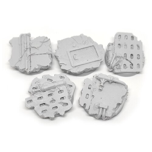 Набор круглых подставок для миниатюр (Вархаммер, Warhammer и пр.) "Urban Fight Bases / Городской бой", 25 мм, непокрашенные, 5 шт.