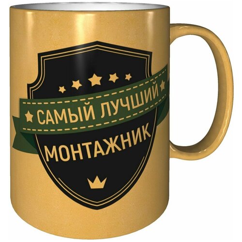 Кружка самый лучший Монтажник - 330 мл., цвет золото.