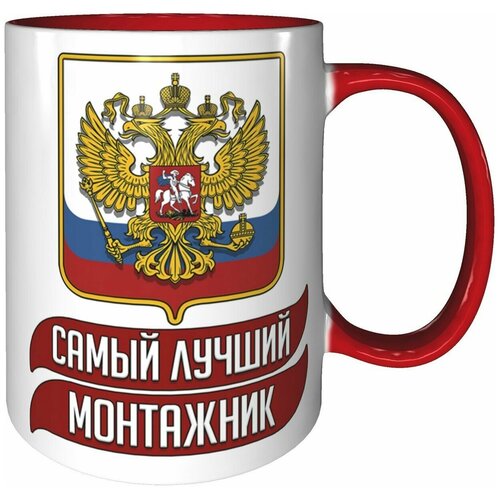 Кружка самый лучший Монтажник - красный цвет ручка и внутри кружки.