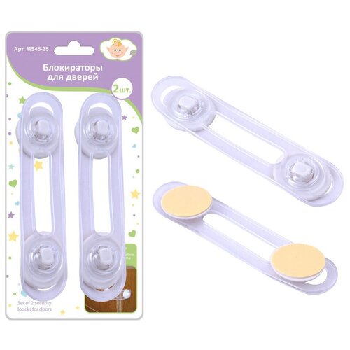 Фиксатор для дверей и ящиков самоклеящийся Мультидом, 14 см, 2 шт