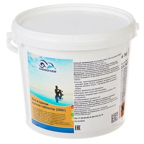 Дезинфицирующее средство Chemoform "Всё в одном", для воды бассейне, мульти-таблетки, 200 г, 5 кг