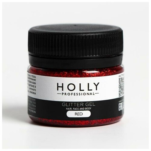 Декоративный гель для волос, лица и тела GLITTER GEL Holly Professional, Red, 20 мл