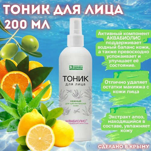Сакские грязи, Тоник для лица, Нежный аквабиолис для чувствительной кожи, Крымская натуральная косметика, 200 мл