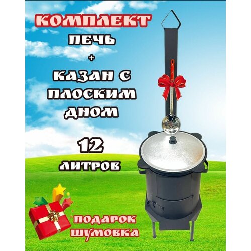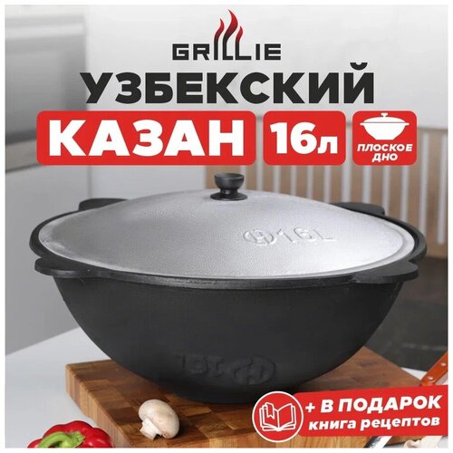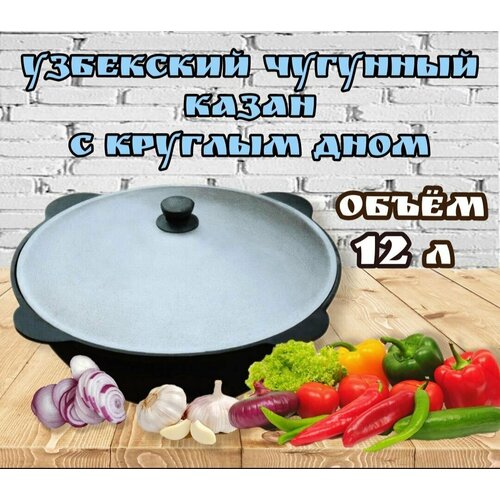 Узбекский чугунный казан 12 л плоское дно с книгой рецептов в подарок