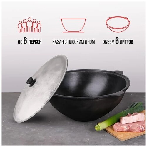Казан Узбекский Наманган Чугун плоское дно, Алюминиевая крышка, 6 л