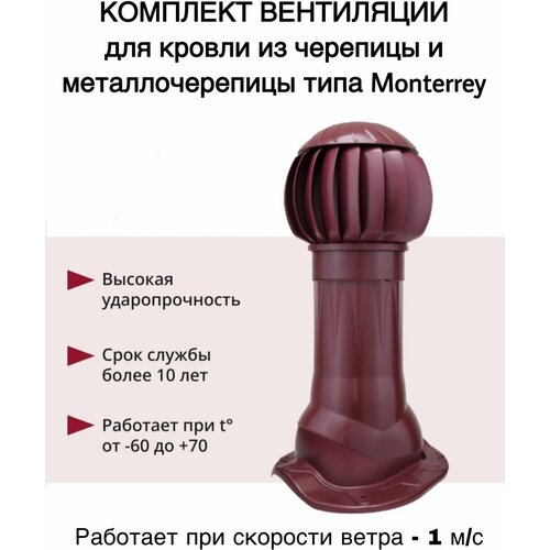 Готовый комплект вентиляции РВТ-160 (РВТ,ВВ,ПЭ) для кровли из металлочерепицы типа Monterrey, бордовый