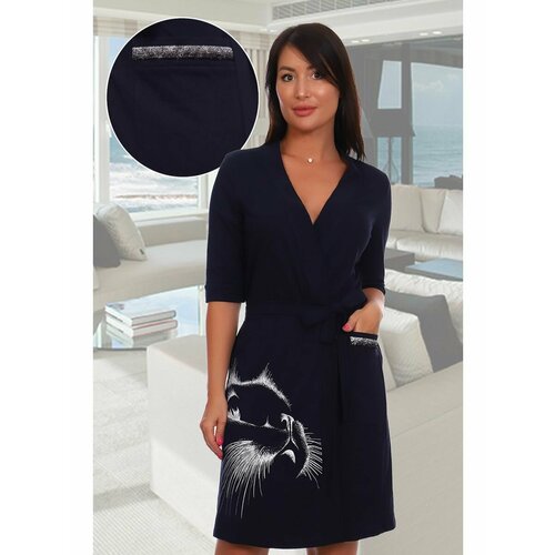 Халат Натали, короткий рукав, размер 44, черный