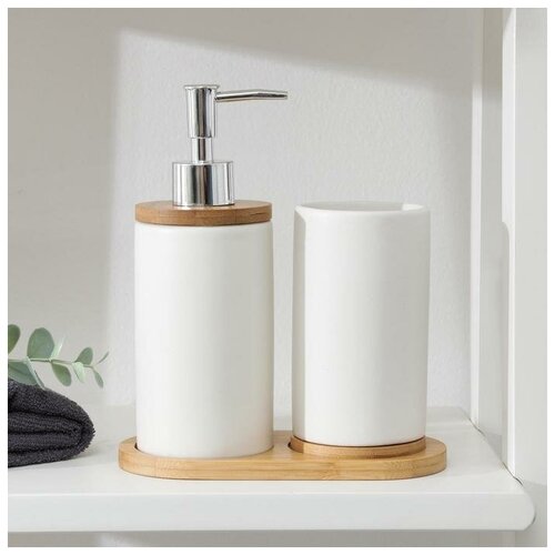 Набор аксессуаров для ванной комнаты "Натура", 2 предмета (дозатор 400 мл, стакан, на подставке), цвет белый
