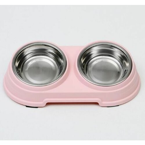 Миска металлическая двойная на пластиковом основании, 25 х 14 х 5 см