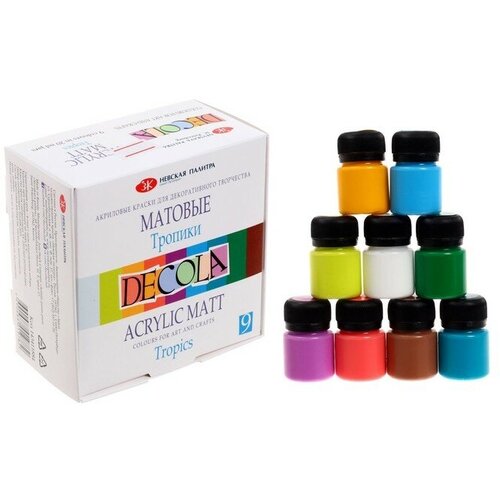 Завод художественных красок «Невская палитра» Краска акриловая, набор 9 цветов х 20 мл, Matt, ЗХК Decola Тропики, матовая, 143411884