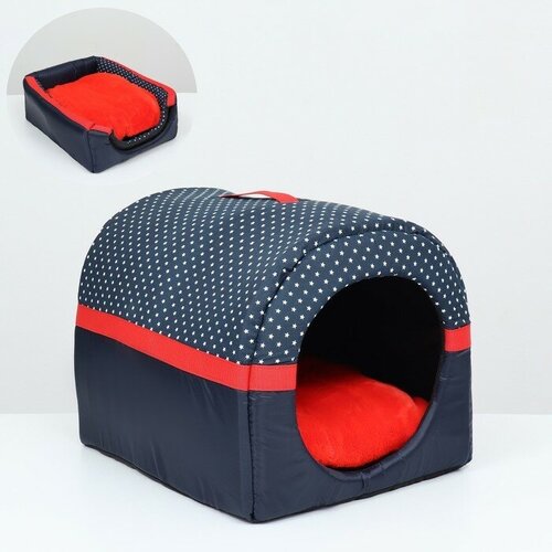 Дом-трансформер Норка, Оксфорд бязь иск. мех, 45 х 35 х 35 см, синий со звездами